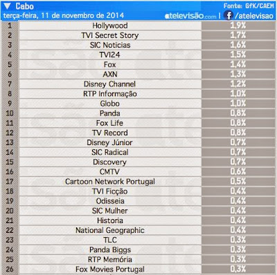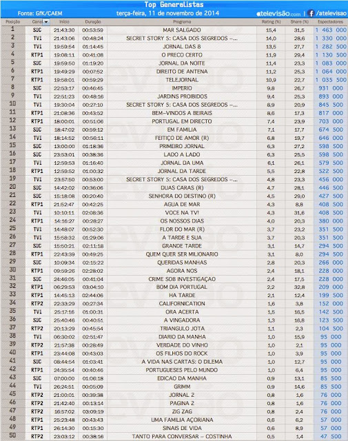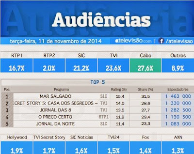 AUDIÊNCIAS: DOMINGO, 16 DE NOVEMBRO DE 2014